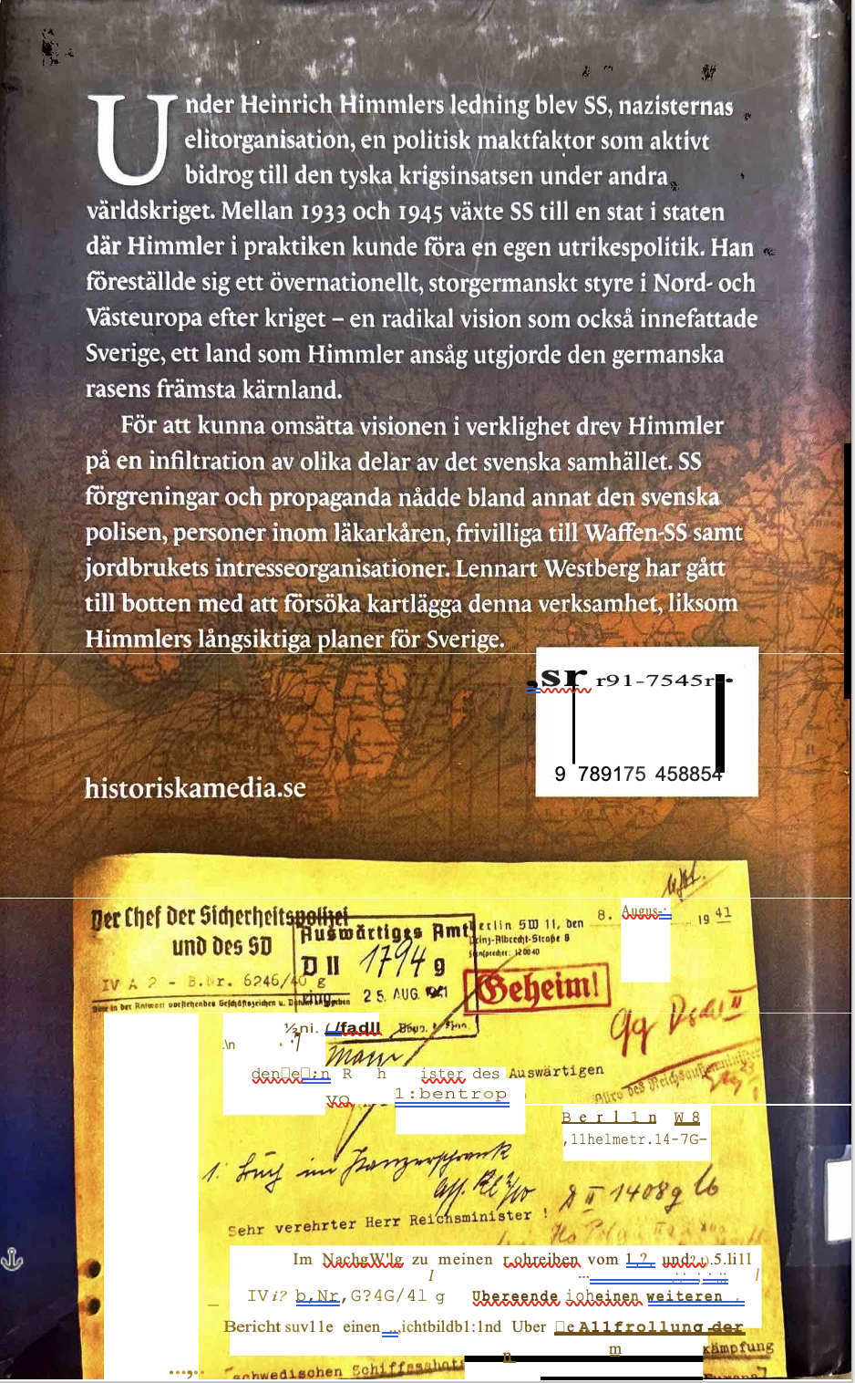 Under Heinrich Himmlers ledning blev SS, nazisternas elitorganisation, en politisk maktfaktor. SS växte mellan 1933 och 1945 till en stat i staten genom vilken Himmler i praktiken kunde föra en egen utrikespolitik. Himmler föreställde sig ett övernationellt, storgermanskt styre i Nord- och Västeuropa efter kriget. En radikal vision som också innefattade Sverige, ett land som Himmler ansåg utgjorde den germanska rasens främsta kärnland. För att kunna omsätta visionen i verklighet drev Himmler på en infiltration av olika delar i det svenska samhället. SS förgreningar och propaganda i Sverige nådde bland annat polisen, personer inom läkarkåren, frivilliga till Waffen-SS och jordbrukets intresseorganisationer.