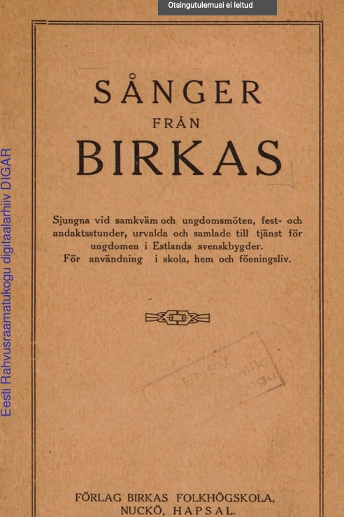sjungna vid samkväm och ungdomsmöten, fest- och andaktsstunder, urvalda och samlade till tjänst för ungdomen i Estlands svenskbygder : för användning i skola, hem och föreningsl
